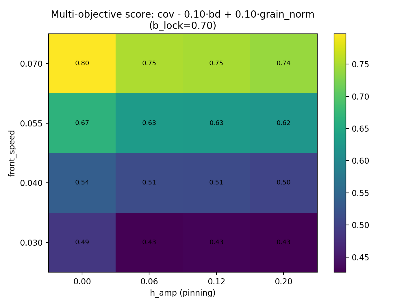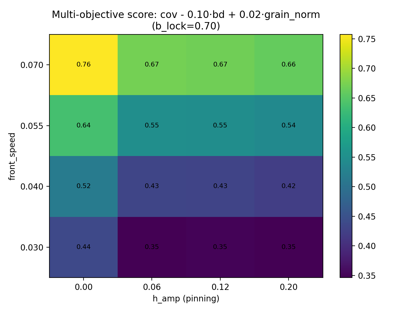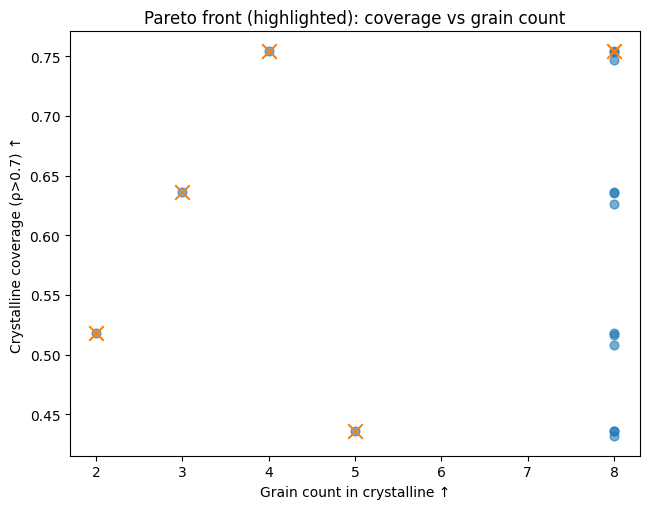 Using Pareto optimization (maximize coverage and grain count, minimize boundary density):