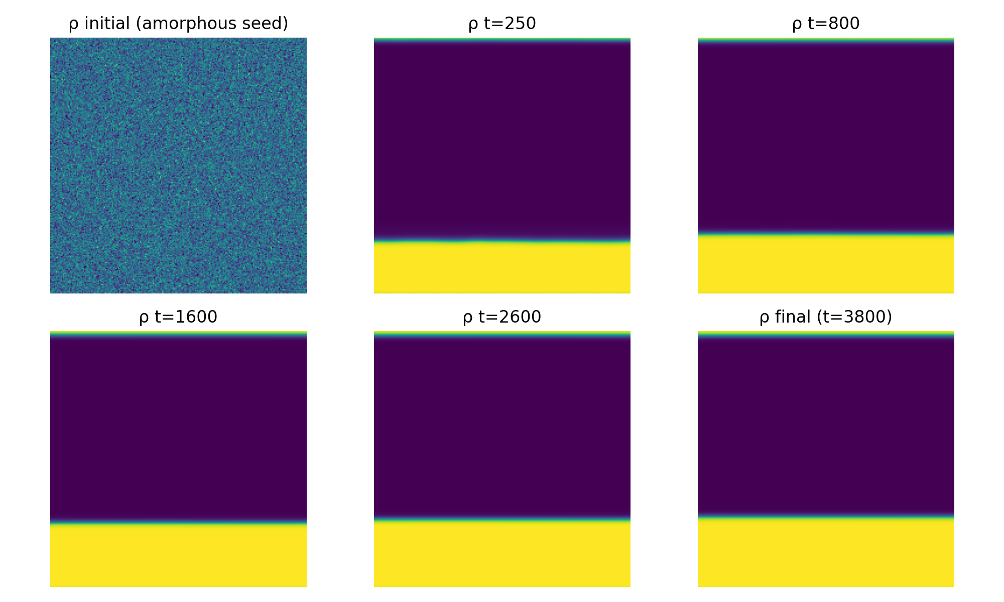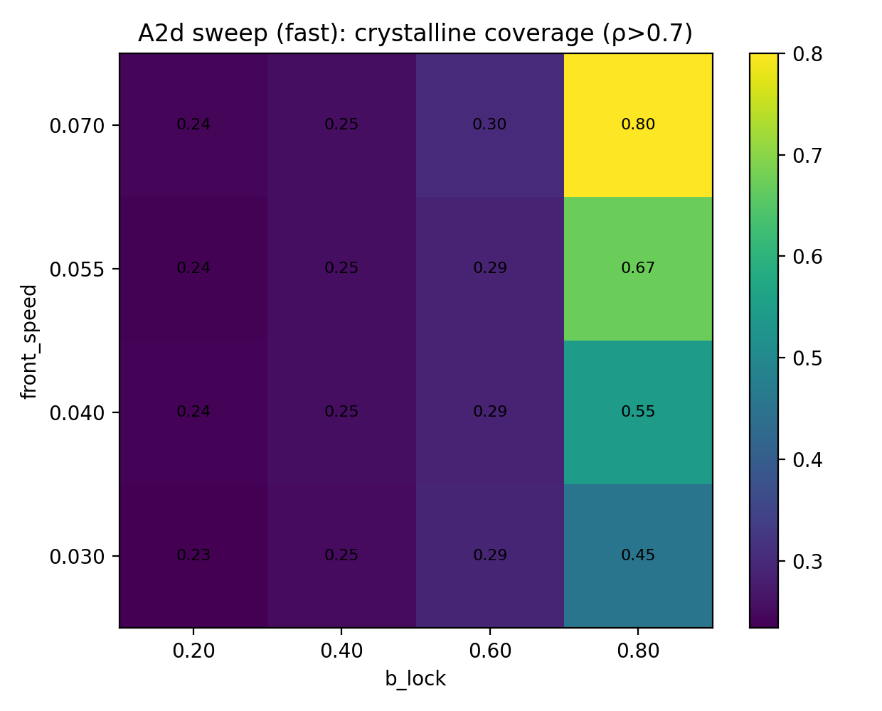 - The moving front produces area‑wide crystallization rather than a narrow stripe.