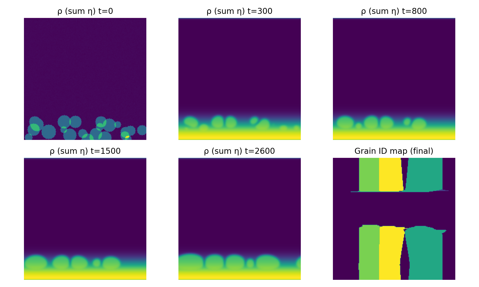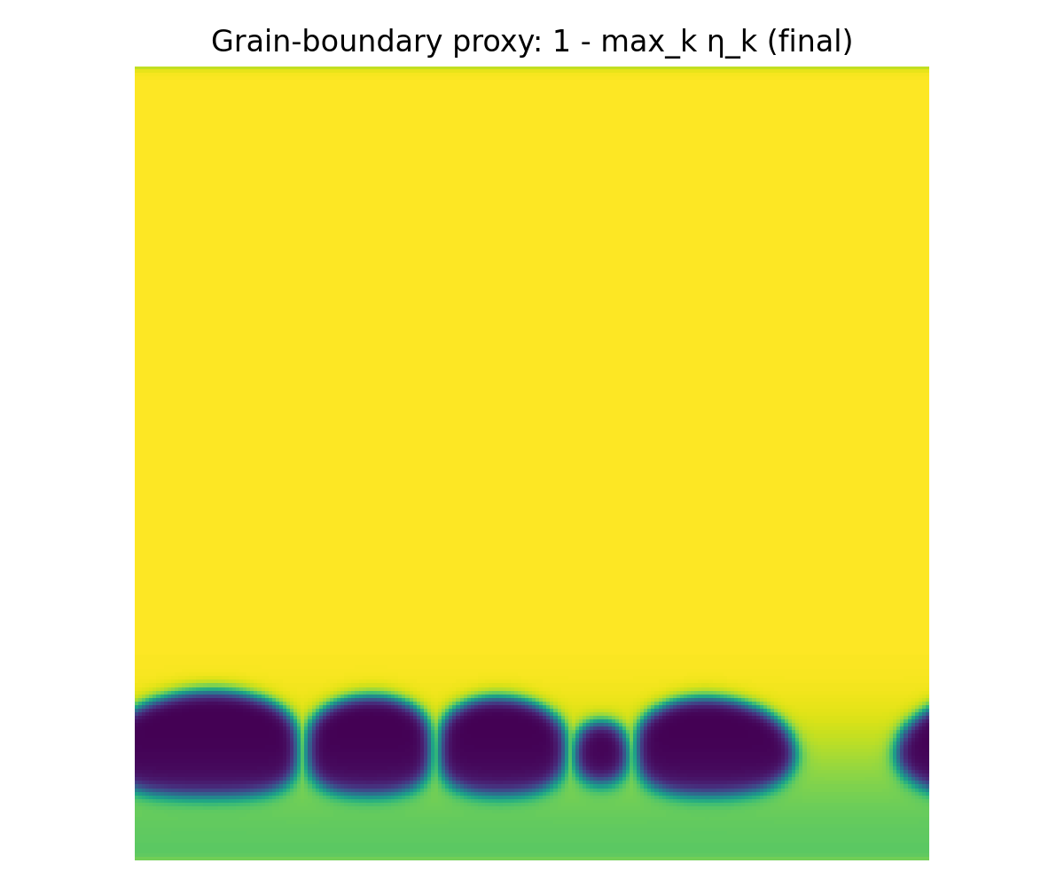 - Without pinning, grain coarsening leads to single‑grain dominance.