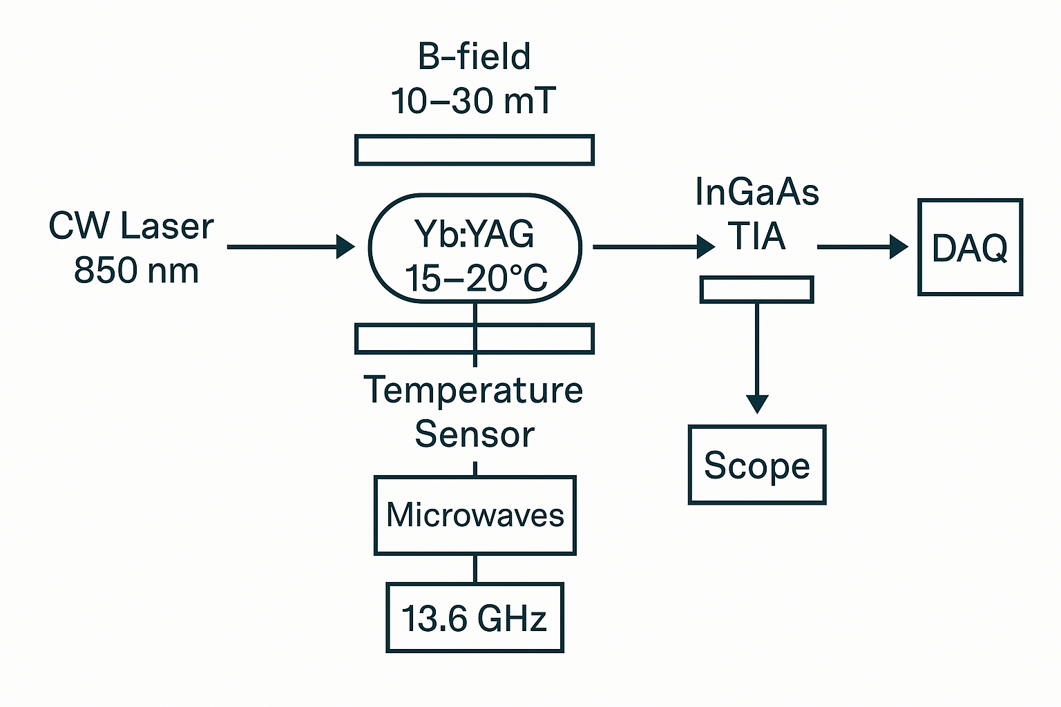- DAQ logging system connected to photodiodes, magnetic probes, and environmental sensors.
