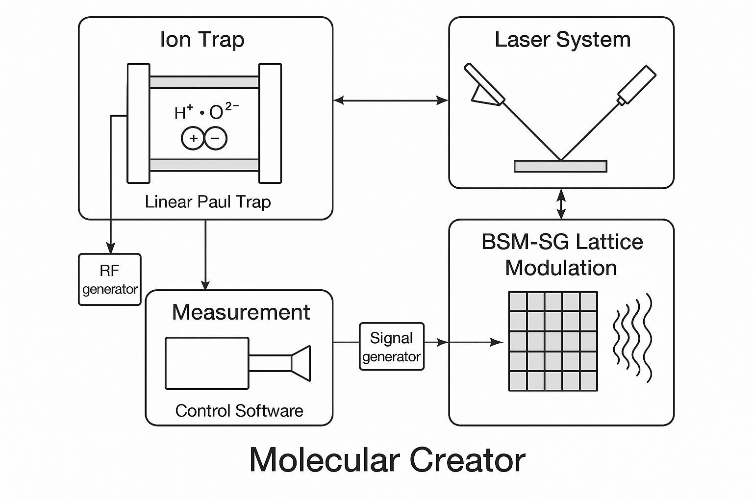 The "Molecular Creator" is a revolutionary experimental platform designed to replicate and explore matter formation according to the Basic Structures of Matter – Supergravitation Unified Theory (BSM-SG). Unlike classical systems that simulate molecular behavior through chemical or quantum approximations, this system aims to replicate the actual spatial lattice and resonance geometry that guides real matter formation in the universe.