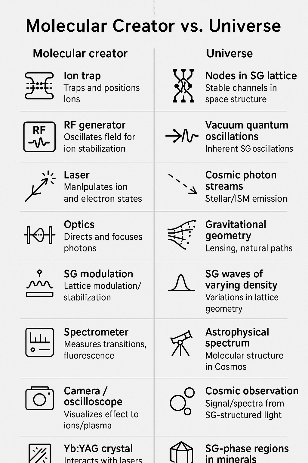 The Molecular Creator is not merely an engineering construct. It is an ontological probe — a tool for testing the deep architecture of space itself. By aligning with BSM-SG theory, it allows scientists to: